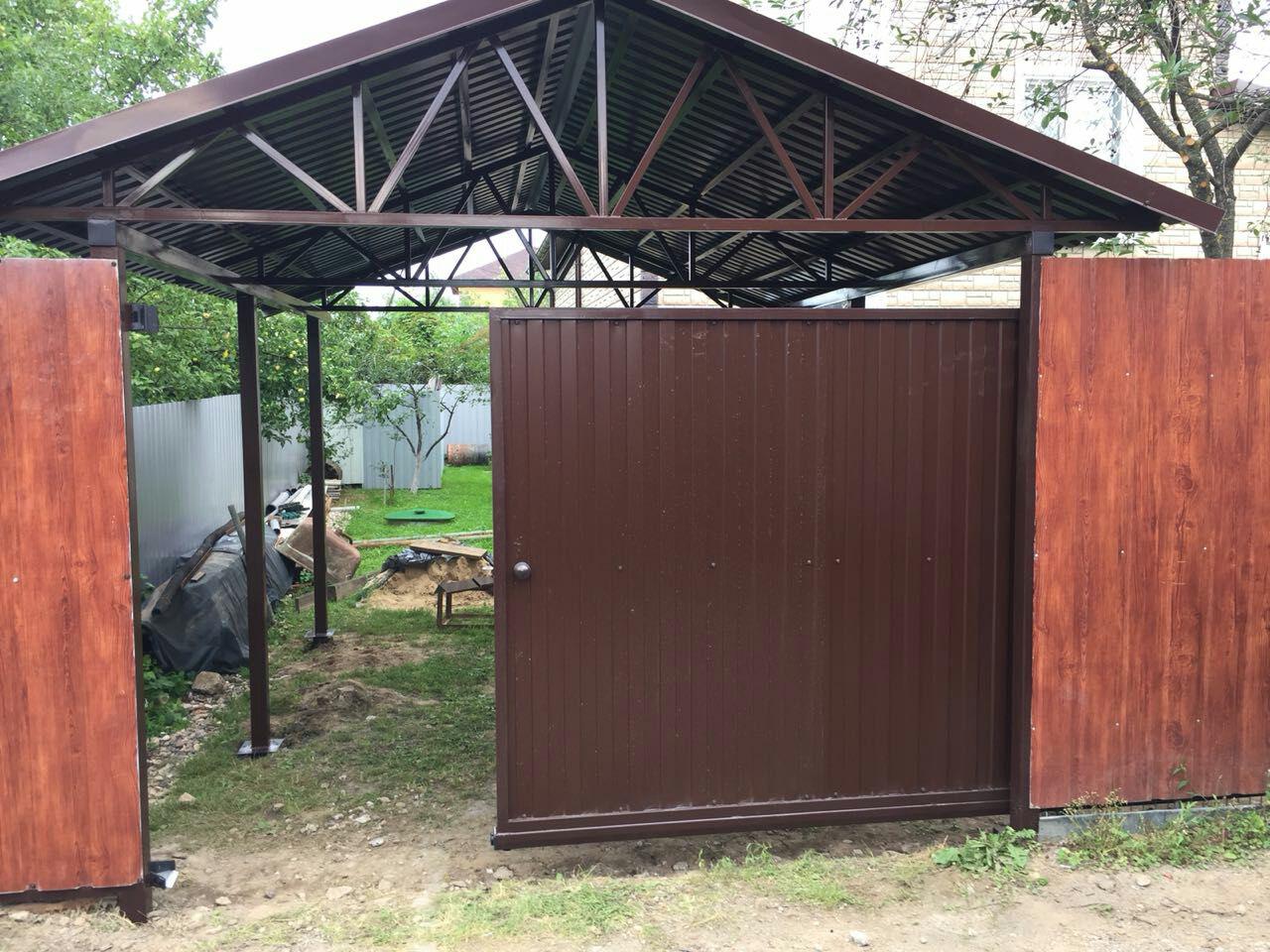 Установим не только ворота, но и забор или навес.
